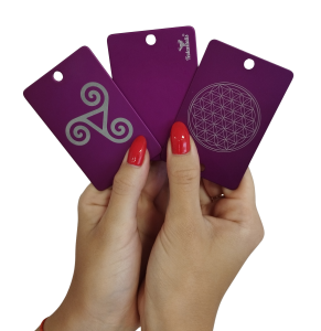 Las Placas Energéticas de color Púrpura, tienen el propósito de Sanación y Crecimiento Interior del Individuo. La diferencia entre la plaquita de 8,5 x 5,5 cm y los discos colgantes, simplemente se manifiesta en la potencia y radio de cobertura de cada una.